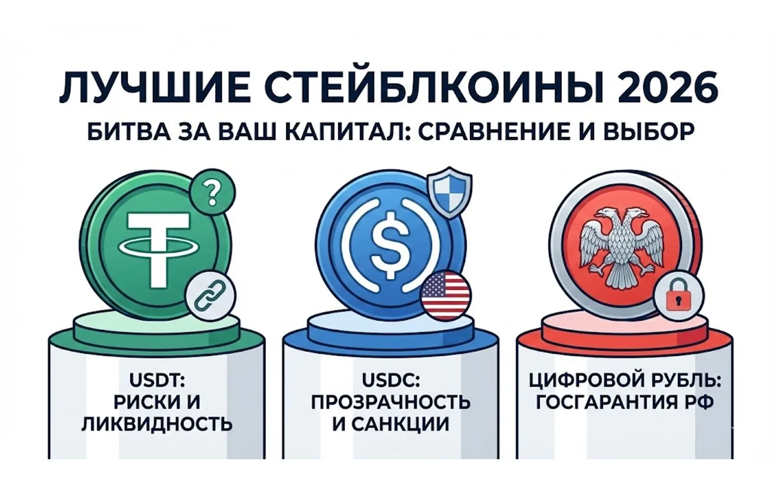 Где хранить «цифровой доллар» в 2026 году? Полный гид по стейблкоинам: битва USDT, USDC и Цифрового Рубля